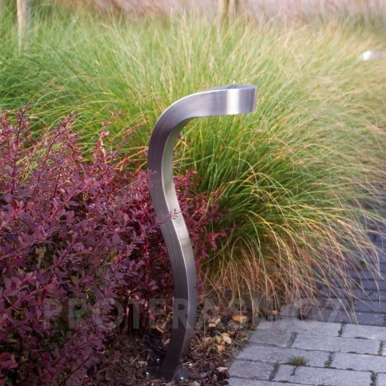 Venkovní LED lampa je z nerezové oceli. Atypicky tvarovanou lampu je vhodné umístit i do interiéru. Součástí stojné lampy je LED žárovka: příkon 5W, 350mA, přívod 100-240V, 50-60Hz, světelný tok 350Im, barva světla 2700K. Stupeň ochrany IP55. Bezpečnost kategorie 1. Doporučujeme objenat také propojovací box. Rozměry: 13x19x60 cm.