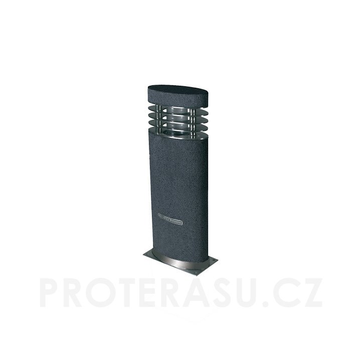 Designová lampa je z kamene (žuly). Podtstavec a stínidlo z nerezové oceli. K venkovnímu světlu je nutné doobjednat žárovku. Parametry doporučené LED žárovky: FLUO, příkon max. 11W, přívod 220V/E27. Stupeň ochrany IP55. Bezpečnost kategorie 2. Doporučujeme objenat také propojovací box. Rozměry: 17x9x40 cm, 18x10 cm (podstavec).