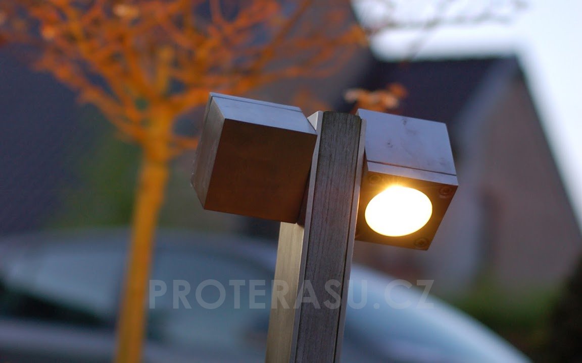 Venkovní nízká lampa má dvě světla v designu reflektorů. Reflektory jsou otočné o 270°. Noha lampy je z teakového dřeva. Podstavec, reflektory a strany nosné nohy jsou z elektrochemicky čištěné nerezové oceli. Lampu je vhodné umístit také do interiéru. K venkovnímu osvětlení je nutné doobjednat dvě žárovky s plochou optikou. Parametry doporučených žárovek: LED, příkon 5W, přívod 220V, patice GU10. Stupeň ochrany IP55. Bezpečnost kategorie 1. Doporučujeme objenat také propojovací box. Rozměry: 20x7,5x30 cm, 9x9 cm (podstavec).
