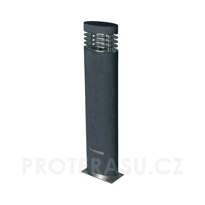 Vysoká designová lampa je z kamene (žuly). Podtstavec a stínidlo z nerezové oceli. K venkovnímu osvětlení je nutné doobjednat žárovku. Parametry doporučené LED žárovky: FLUO, příkon max. 11W, přívod 220V/E27. Stupeň ochrany IP55. Bezpečnost kategorie 2. Doporučujeme objenat také propojovací box. Rozměry: 17x9x70 cm, 18x10 cm (podstavec).