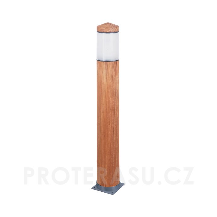 Designová lampa je vyrobena z teakového dřeva. Podtstavec a okraje stínidla jsou z nerezové oceli. K venkovnímu světlu je nutné doobjednat žárovku. Parametry doporučené LED žárovky: FLUO, příkon max. 11W, přívod 220V/E27. Stupeň ochrany IP55. Bezpečnost kategorie 2. Doporučujeme objenat také propojovací box. Rozměry: prům. 10 cm, výš. 70 cm, 11x11 cm (podstavec).