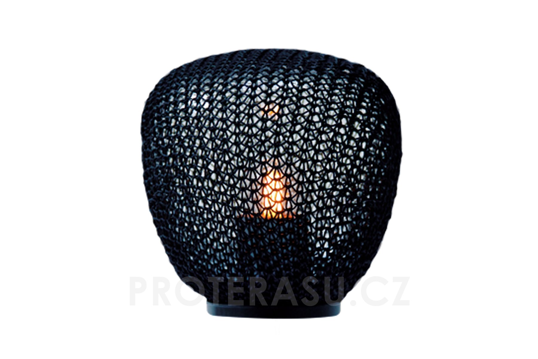 Venkovní samostatně stojící světlo Monsieur Madame Cachet značky Tribu. Širm je opleten háčkovaným vzorem z polyolefinového lanka.