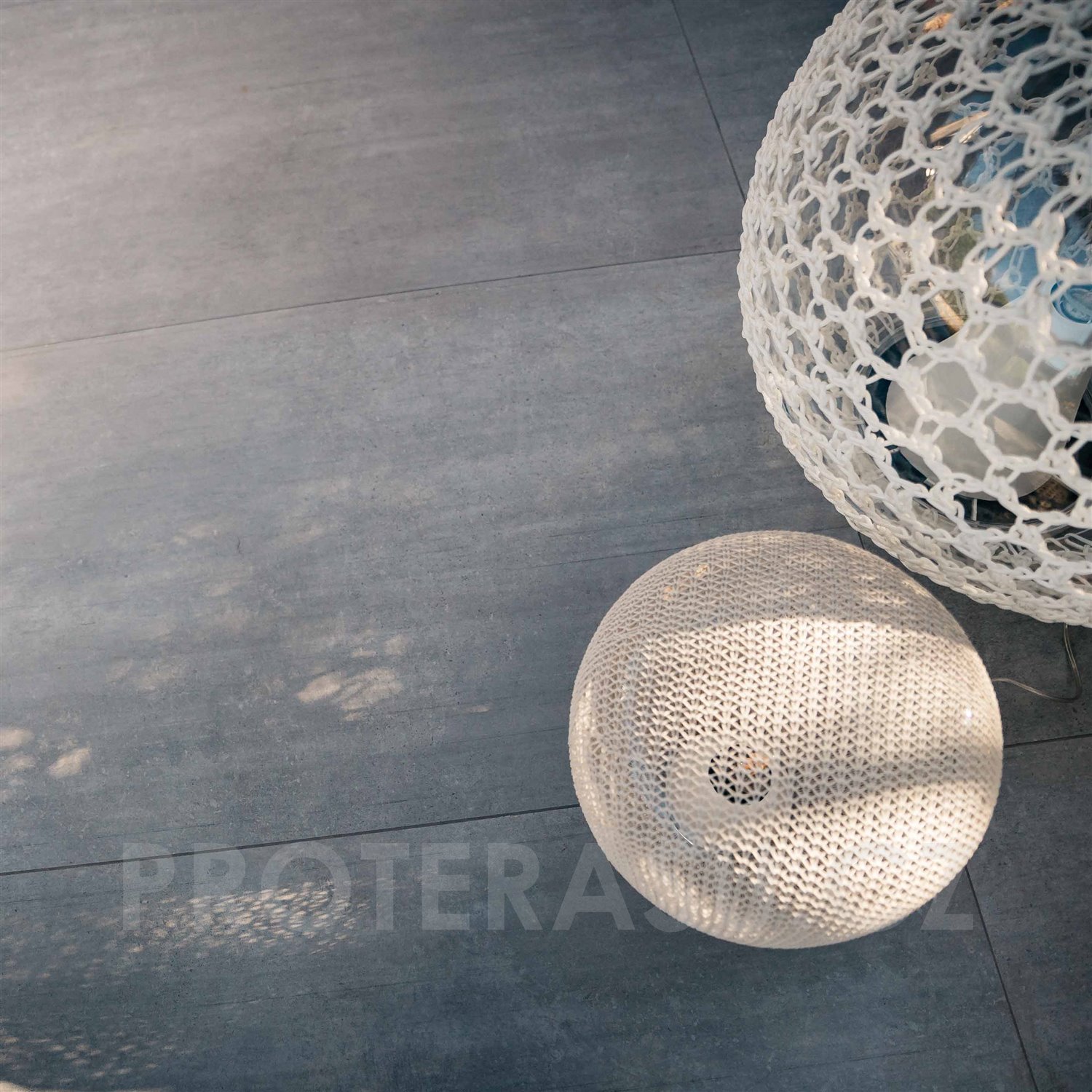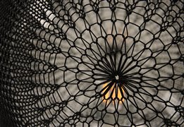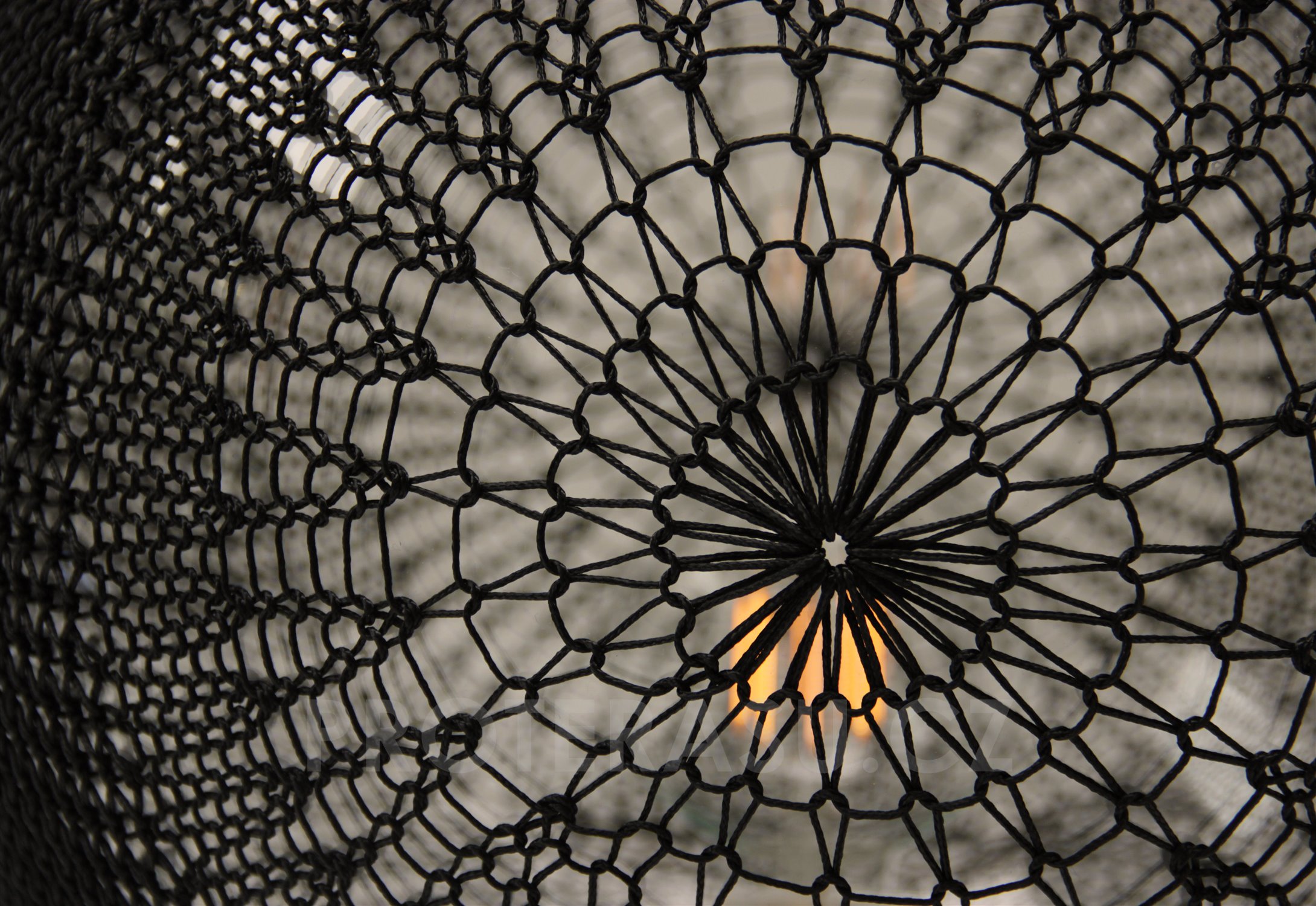 Venkovní samostatně stojící světlo Monsieur Latoque značky Tribu. Širm je opleten háčkovaným vzorem z polyolefinového lanka.