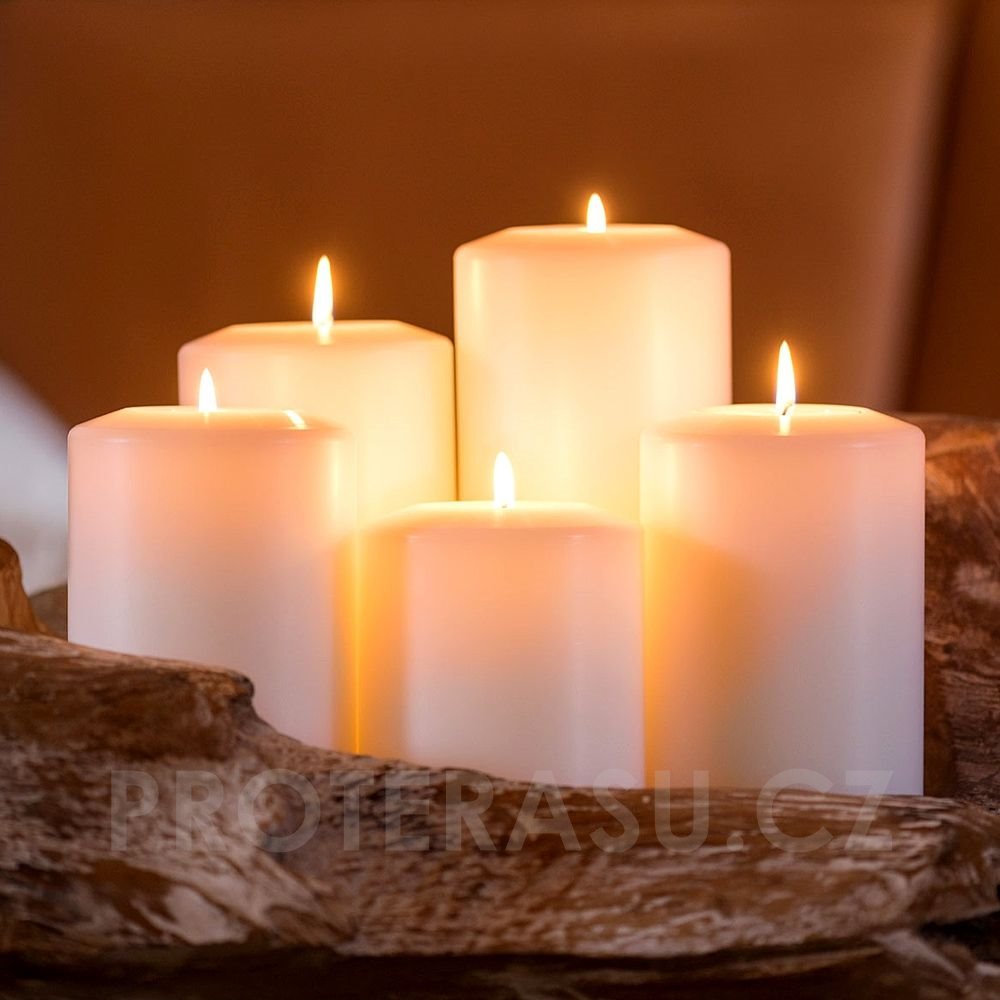 Svíčka, která se v létě nerozpustí na slunci. Venkovní svícen pro čajové svíčky, k nerozeznání od pravé svíčky.