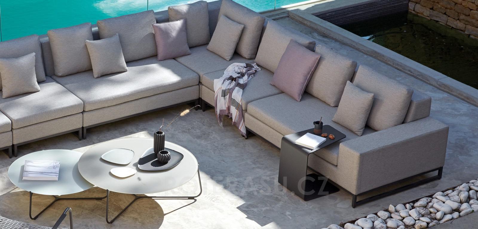 Zahradní odkládací stolek značky Manutti. Stolek je celohliníkový.